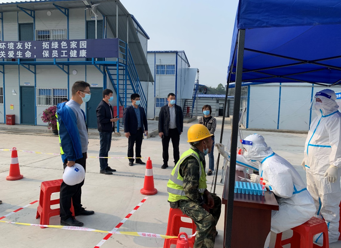 區(qū)委副書(shū)記王建紅現(xiàn)場(chǎng)督導(dǎo)相關(guān)工作,高度肯定了這次工地核酸采樣試點(diǎn)工作。要求項(xiàng)目工地要堅(jiān)守“幸福生活共同締造”信念,將工地設(shè)置自主核酸采樣點(diǎn)的方式推廣到全區(qū),讓工人們能不出工地做核酸,最大限度的保障疫情防控和項(xiàng)目施工兩不誤!
