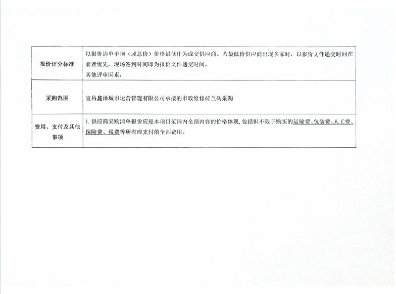 宜昌鑫澤城市運營管理有限公司市政維修荷蘭磚采購項目詢價公告