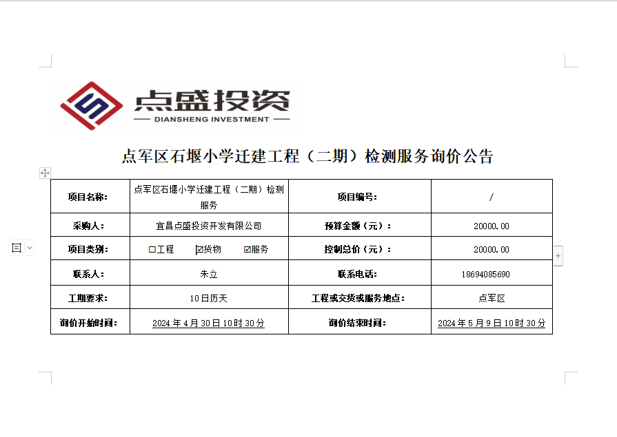 點(diǎn)軍區(qū)石堰小學(xué)遷建工程(二期)檢測(cè)服務(wù)詢價(jià)公告