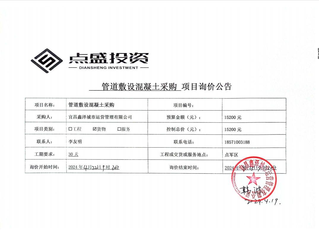 管道敷設(shè)混凝土采購(gòu)項(xiàng)目詢(xún)價(jià)公告