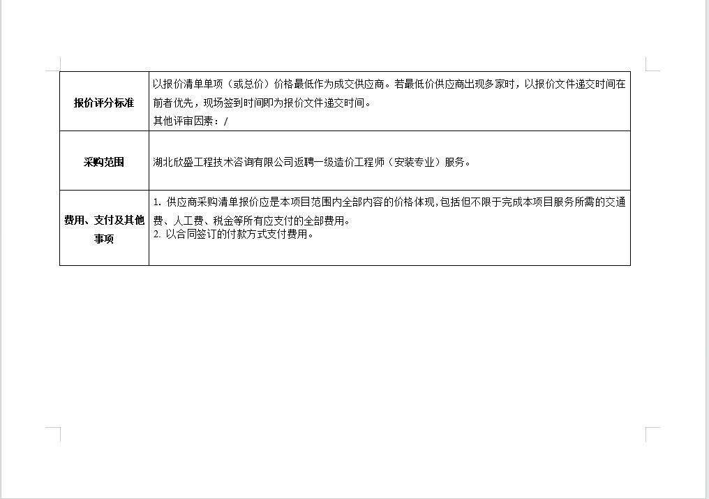 欣盛公司返聘一級造價工程師(安裝專業(yè))咨詢服務詢價公告