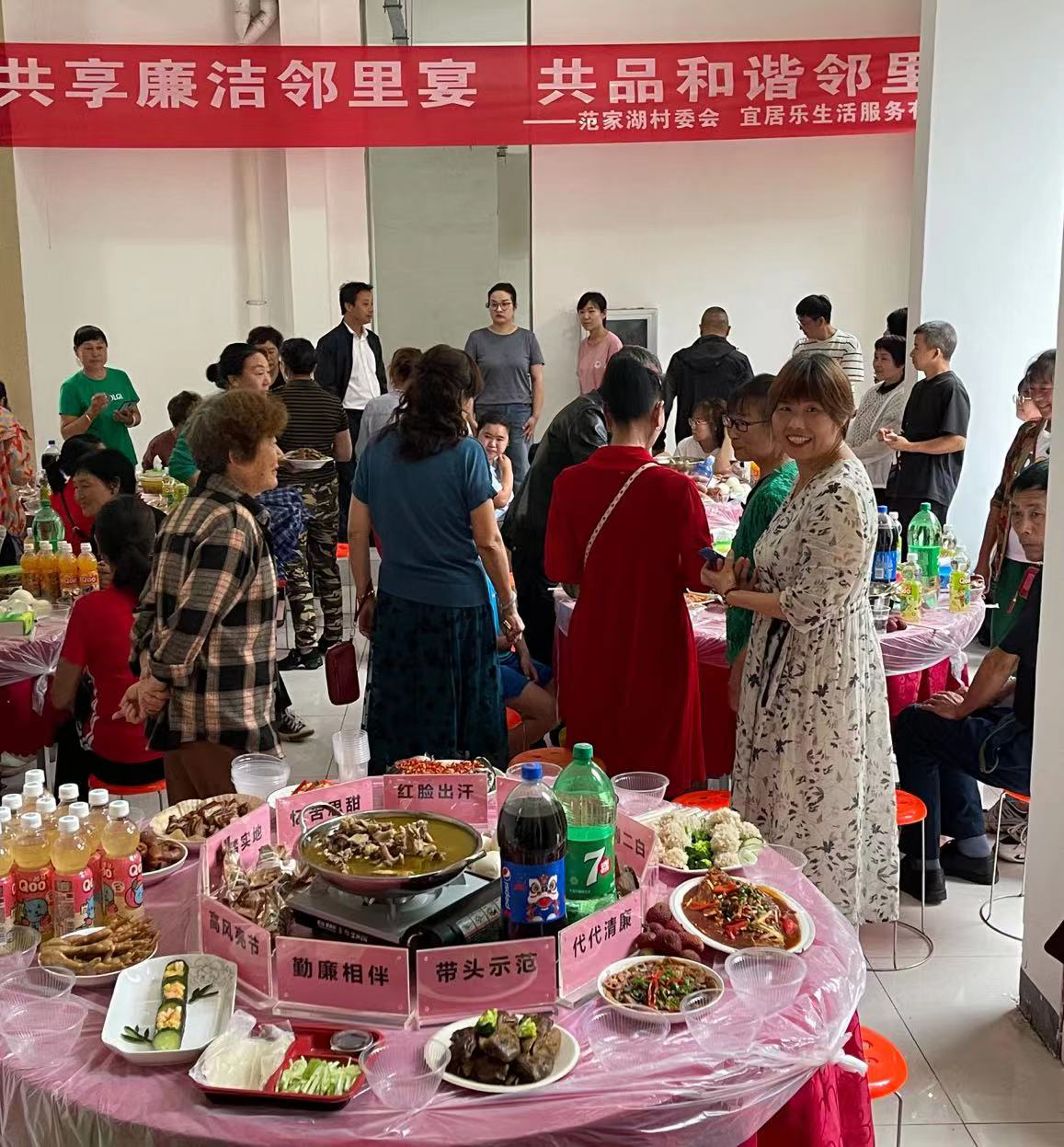 【湖景名苑百人宴】6月18 日上午,范家湖村黨支聯(lián)合轄區(qū)單位、居民、下沉黨員聯(lián)合開展以“共享廉潔鄰里宴,共品和諧鄰里情”為主題的端午節(jié)活動,讓大家感受到了獨(dú)具一格的“清廉美食魅力”。?